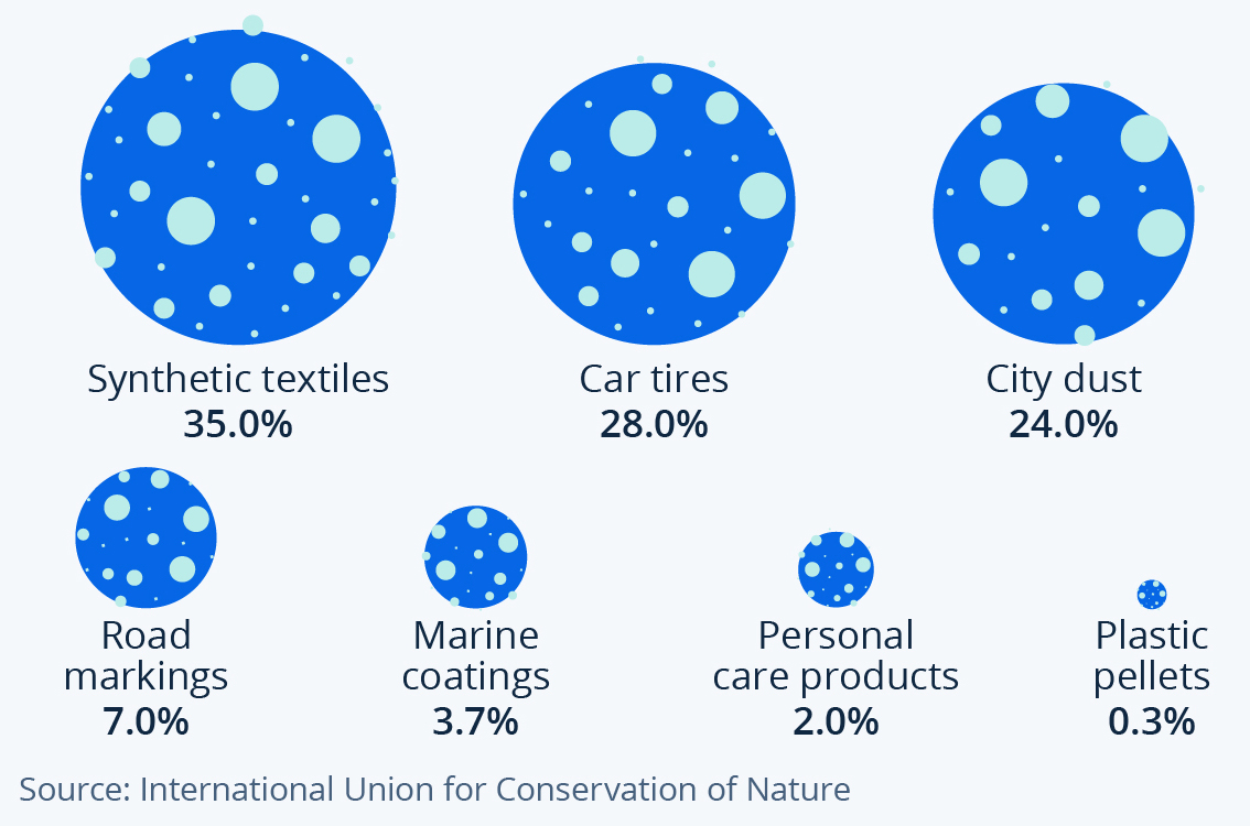 Estimated share of total microplastics in the world’s ocean, by source
