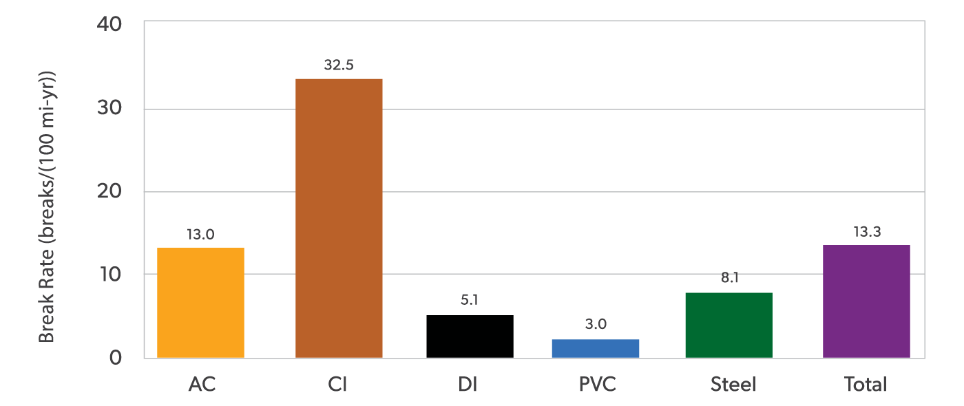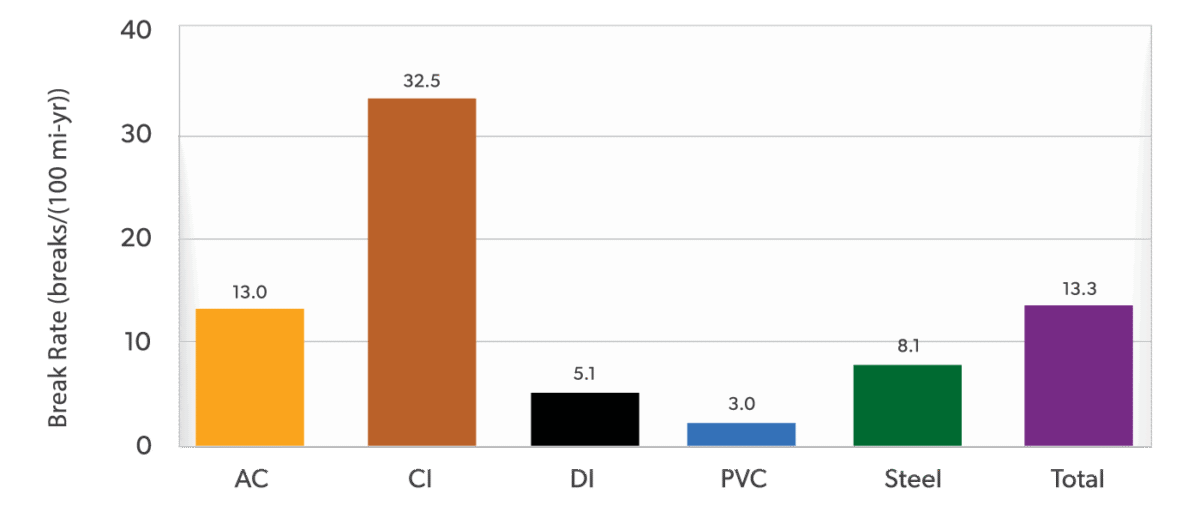 Source: Water Main Break Rates in the USA and Canada: A comprehensive Study Dec 2023, Utah Water Research Laboratory, Utah State University